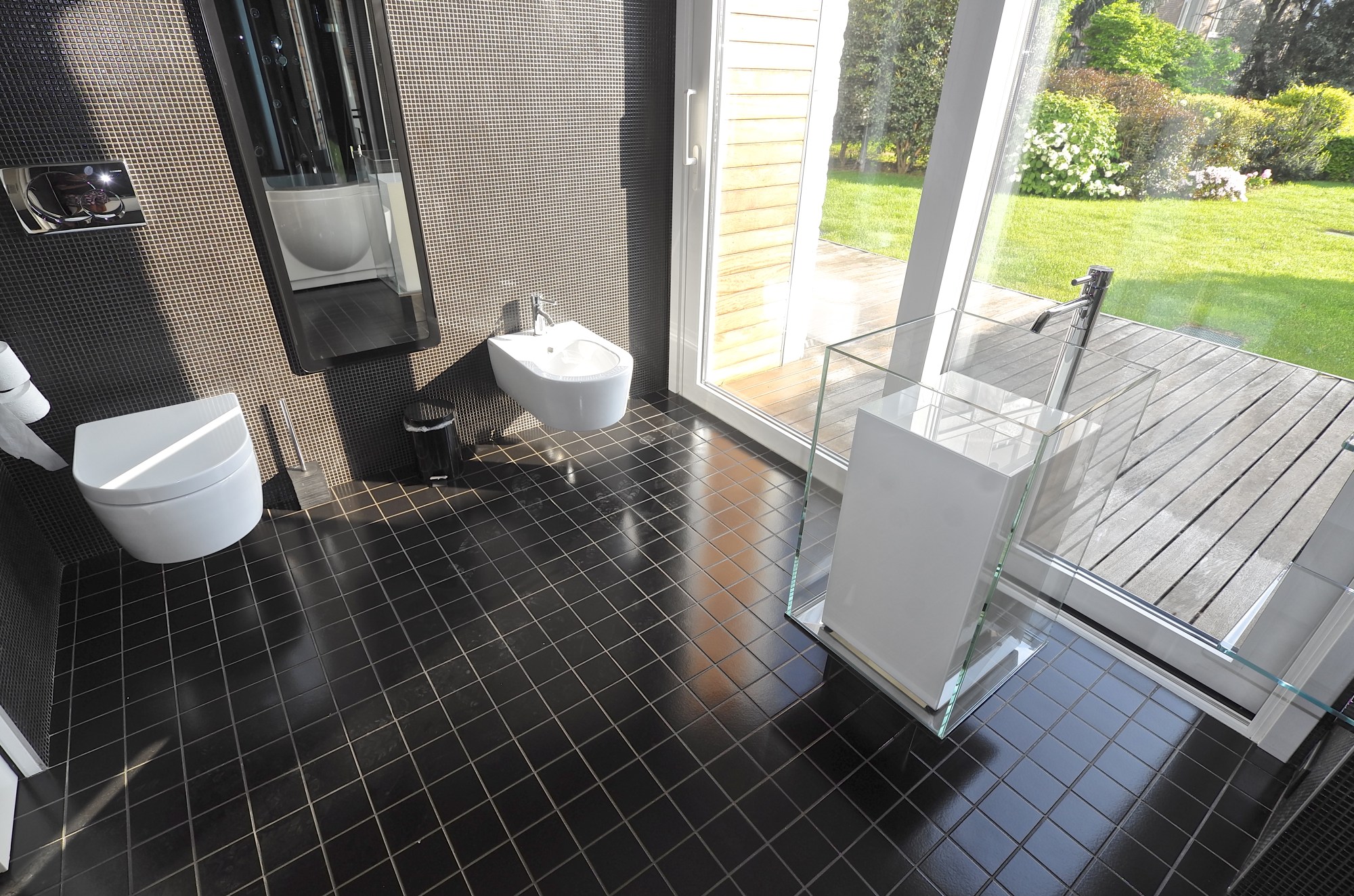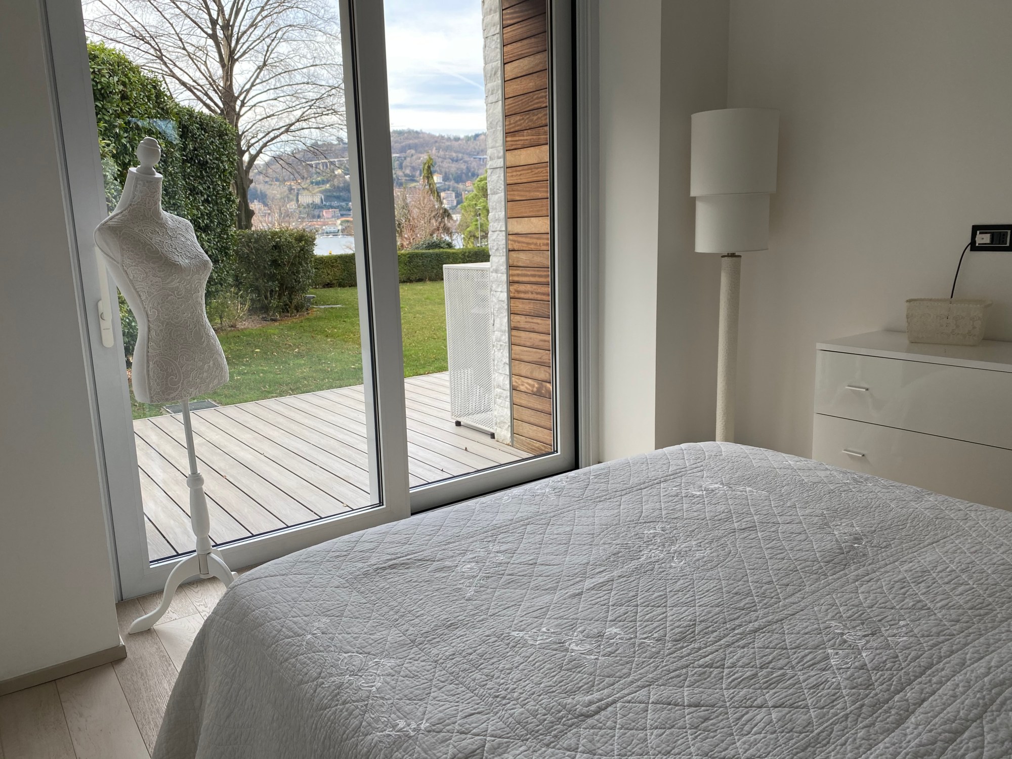 When you look out of the apartment on the lawn, it seems that this soft green expanse, smoothly flows into the emerald-blue waters of the lake. These views can be enjoyed from every room, even bathrooms.